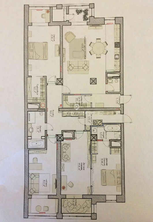 Комнаты: 45 24 19 17 20 м2